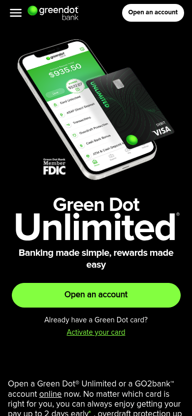 2.2 Green Dot 银行账户(GoBank 与 Unlimited Cash Back Bank Account)