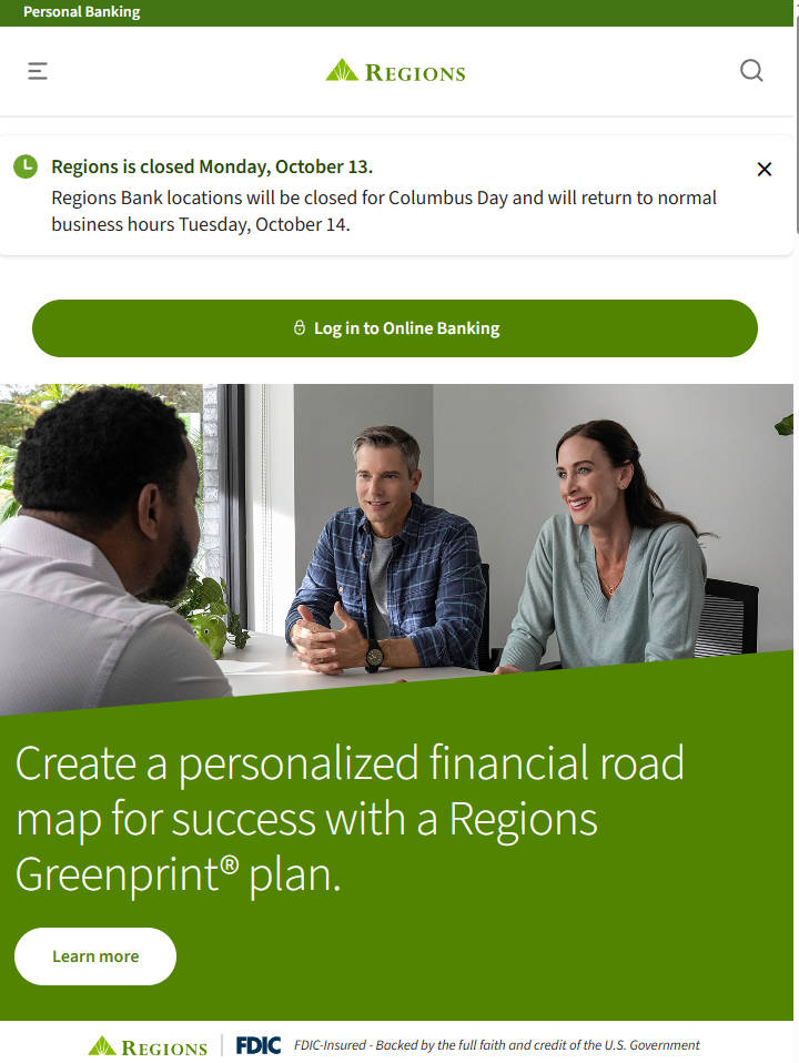 regions.com 是 Regions Bank 的官方在线门户,隶属于 Regions Financial Corporation,这是一家在美国拥有广泛分行网络的大型区域性银行。其商业服务以“支持企业成长”为核心使命,提供从基础账户管理到复杂融资方案的全方位支持。