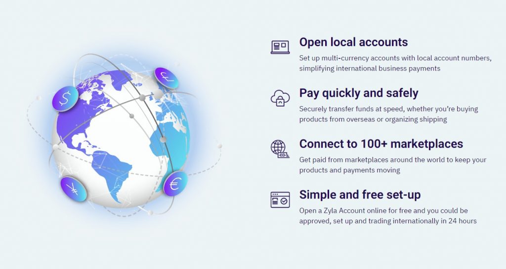 Zyla提供无国界支付账户,无论您是在网上销售、通过市场销售还是从海外供应商处采购,我们都能让您轻松实现国际商务支付。像当地人一样使用多种货币付款,无需海外商业实体。