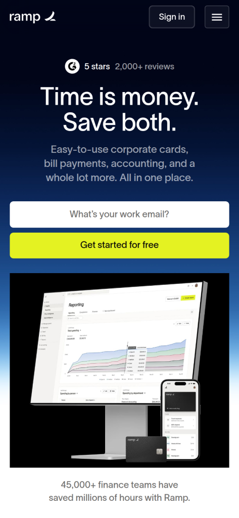 - ✅ 全功能免费:相比同类平台(如 Brex、Stripe Atlas)收取月费,Ramp 的零订阅费模式极具竞争力。