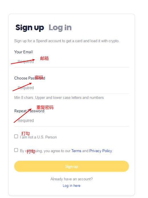 然后按照下图所示填写相关的信息,完成以后点点击signup。